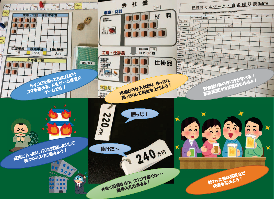 市場から材料を購入し、製品を製造し市場に販売、資金繰り表を作成して儲かる仕組みを体感しましょう!